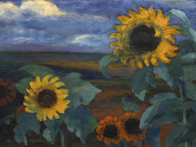 Nolde boldly embraced color to expressively depict floral subjects. Most of his paintings from this time are watercolors, making Sonnenblumen, Abend II particularly rare |